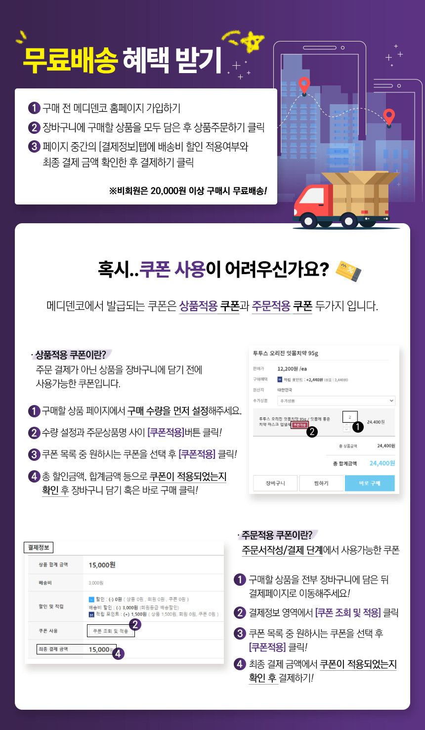 - 비회원 : 20,000원 미만 구매시 3,000원 / 20,000원 이상 구매시 무료배송